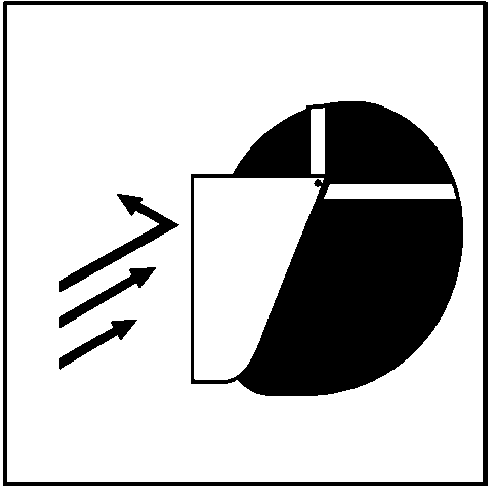 Белая стрелка на черном фоне обозначает источник силы или давления. Возможен вариант черной стрелки на белом фоне, когда надо обозначить особый источник силы или давления. Размеры стрелки приведены на