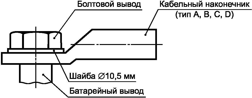 Тип кабельного наконечника для болтового вывода тяговых батарей, указанного на рисунке 2, должен выбираться в зависимости от максимального сечения кабеля, указанного в