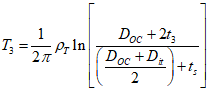 - тепловое сопротивление между кабелем и каналом (трубой), К x м/Вт;