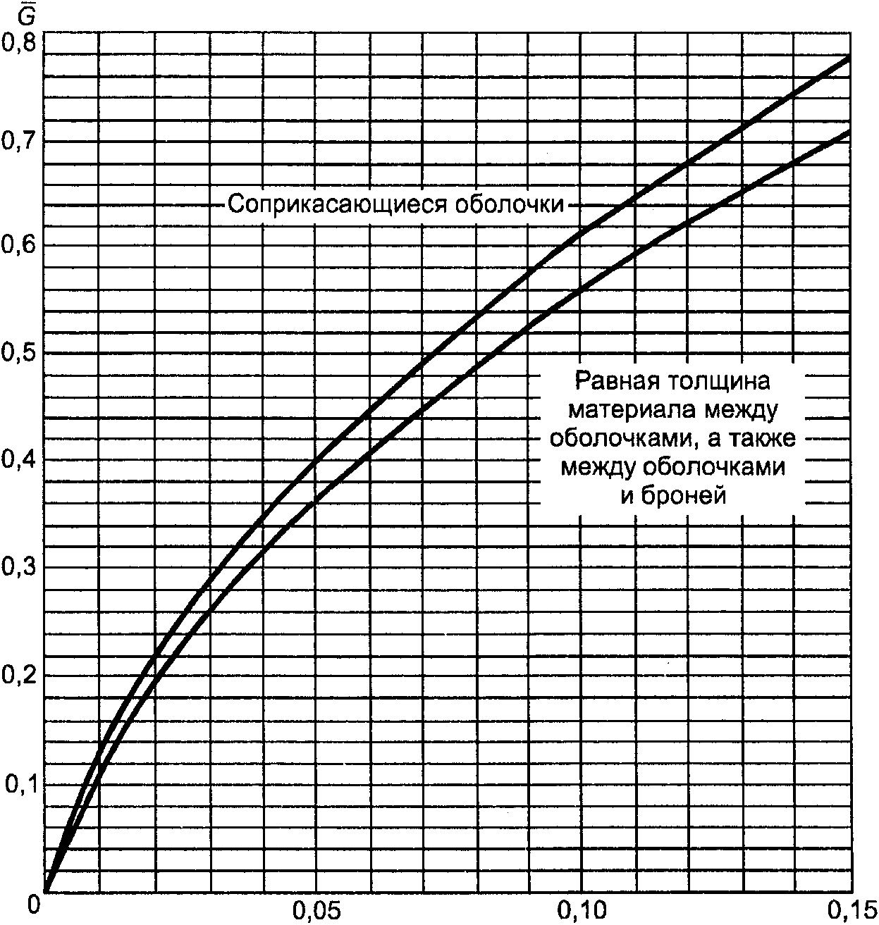 Обозначим через X толщину материала между оболочками и броней, выраженную как часть наружного диаметра оболочки.