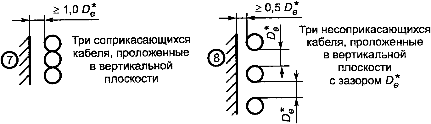 - наружный диаметр кабеля или эквивалентный диаметр группы изолированных жил в кабеле, проложенном в трубе, мм;