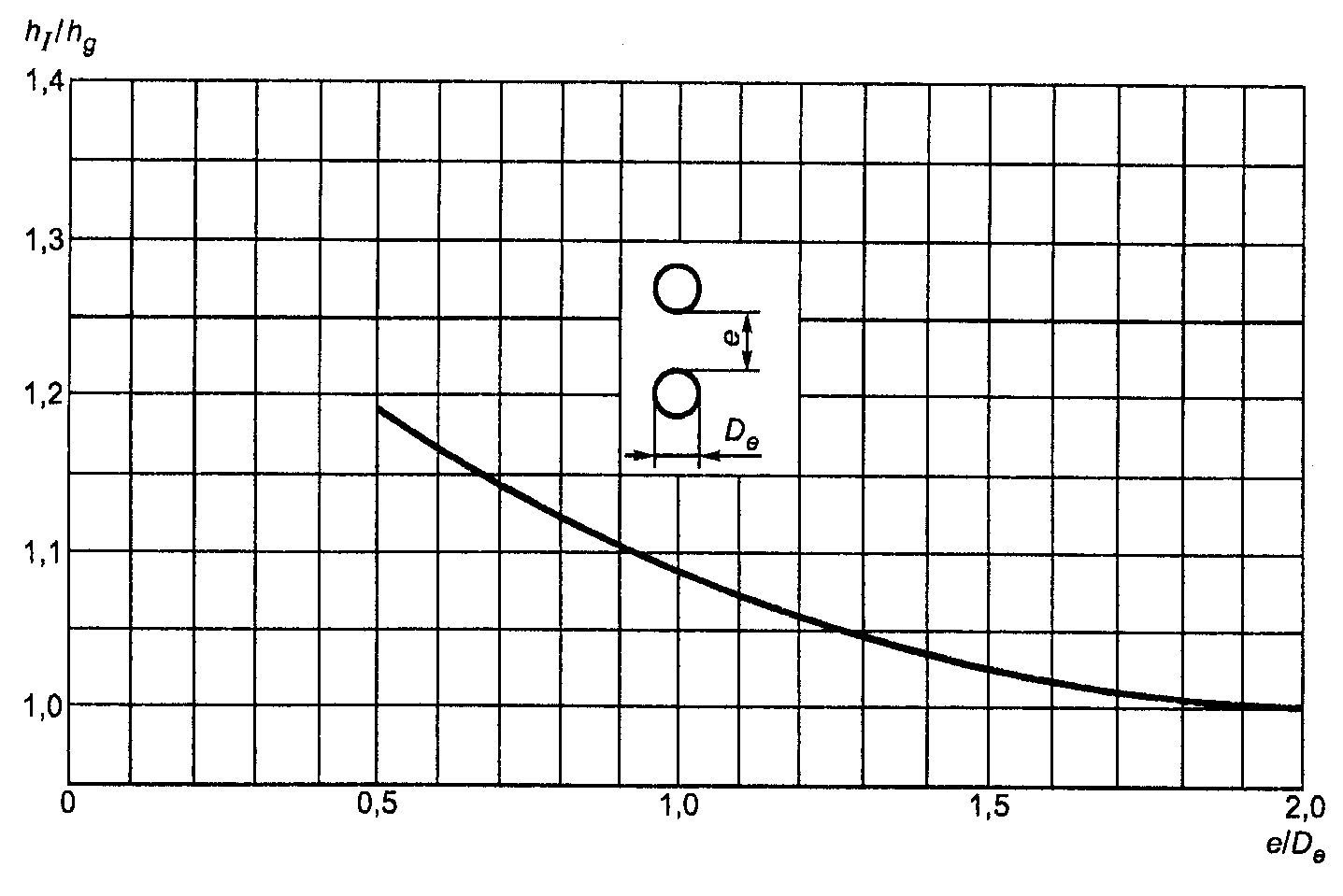 где параметр h приведен в МЭК 60287-2-1 для одного многожильного кабеля или одного одножильного кабеля в составе группы кабелей, расположенных треугольником, в предположении, что он единичен, а отношение