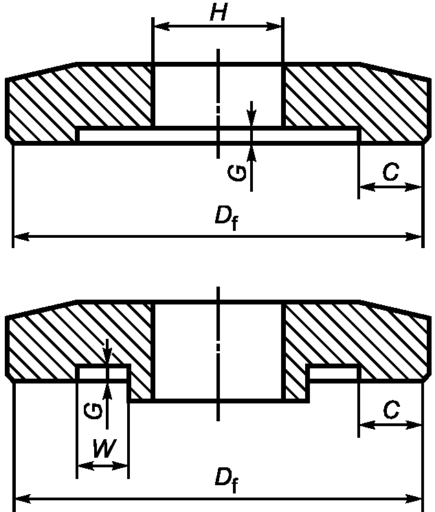 3.103.2. Фланец с кольцевой канавкой (recessed flange): фланец, устанавливаемый на шпинделе машины, имеющий плоскую поверхность с кольцевой канавкой.