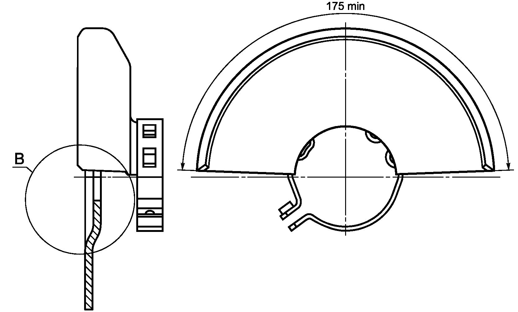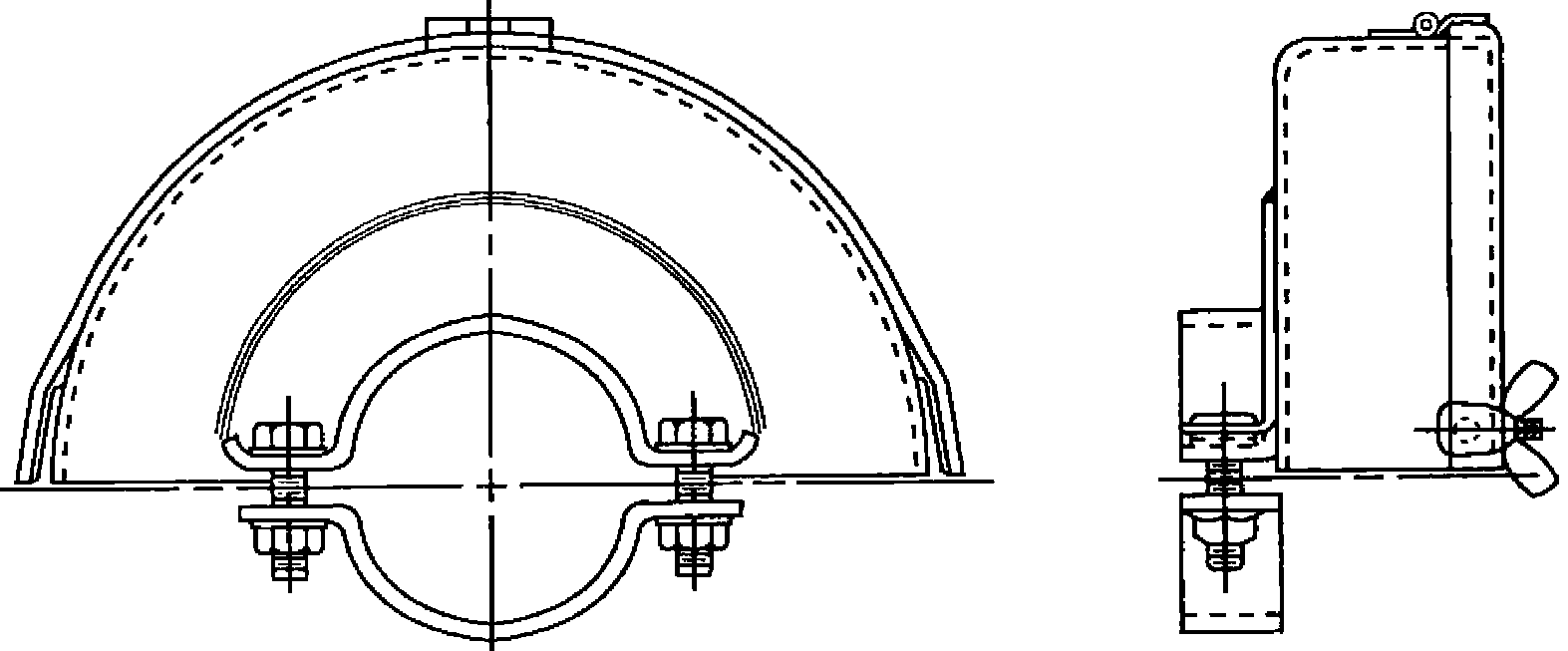 3.109. Защитный кожух (wheel guard): устройство, частично охватывающее шлифовальный круг и обеспечивающее защиту оператора.