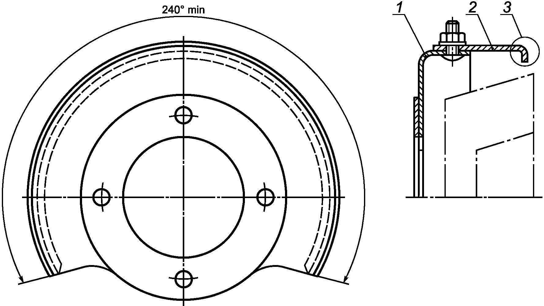1 - кожух; 2 - боковой кожух; 3 - выступ (необязательный)