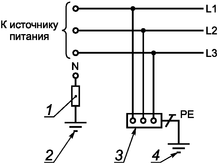 │ Заземленная нейтраль: нейтраль сети, соединенная с землей наглухо или│
