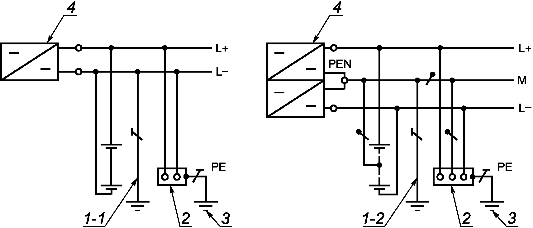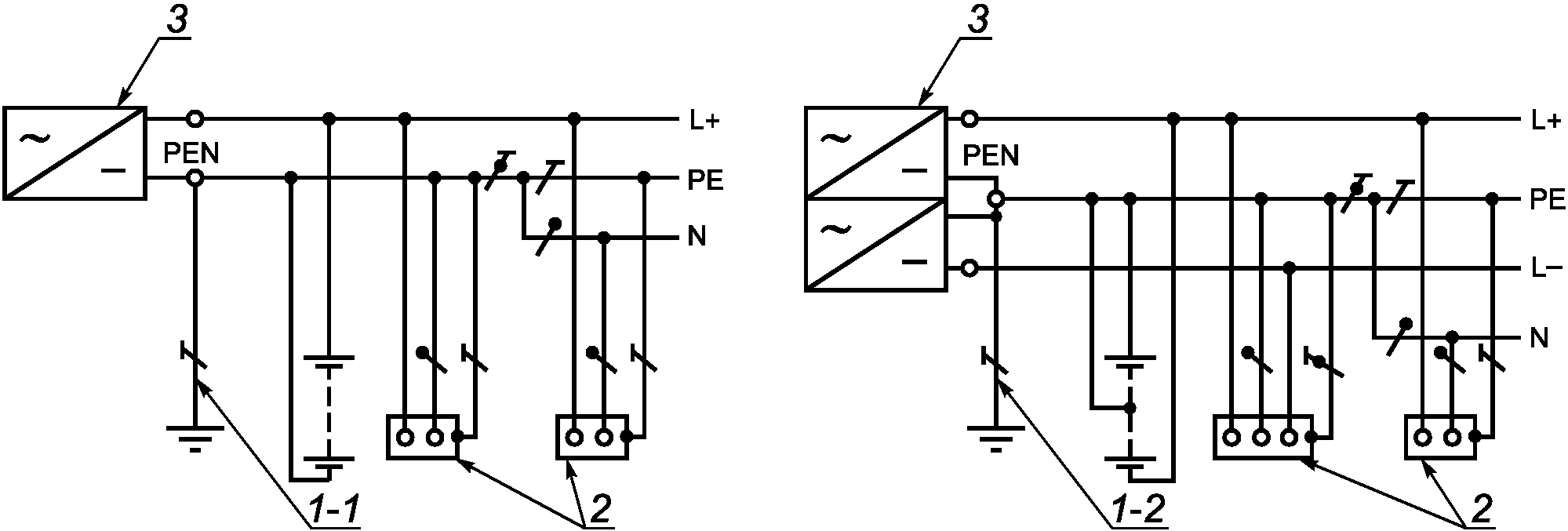 │ - защитного отделения системы ЗСНН (PELV) от всех цепей, помимо БСНН│