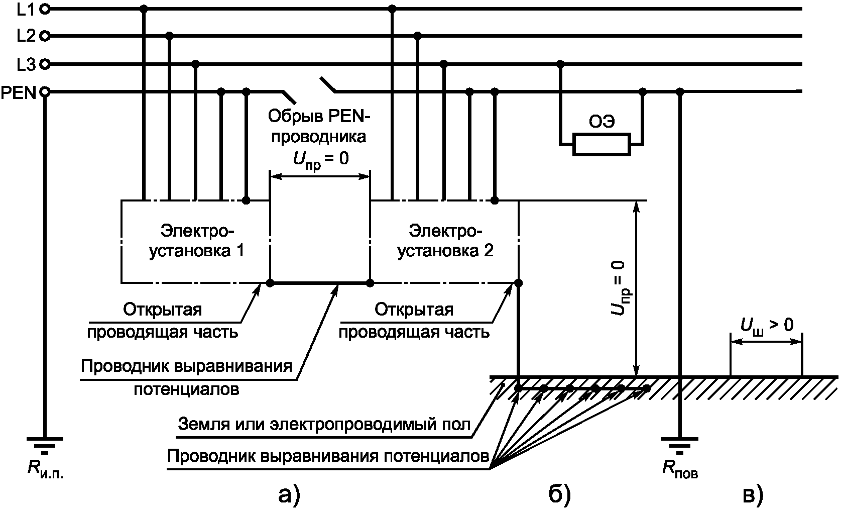 │выравнивания потенциалов, обеспечивающего защиту, между всеми подобными│