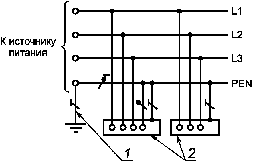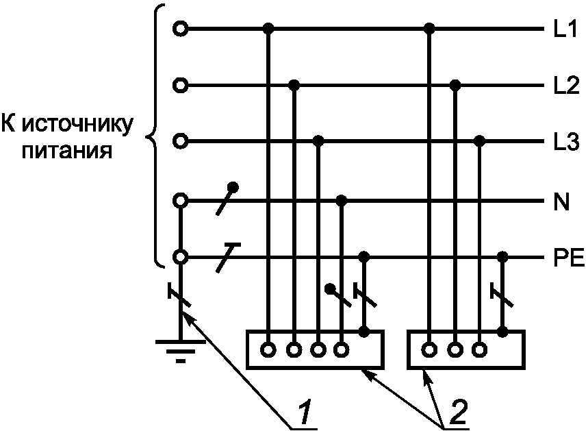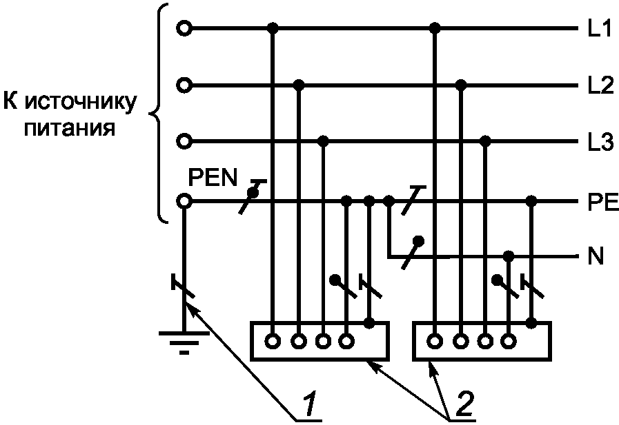 │ Не допускается преднамеренное соединение открытых проводящих частей с│