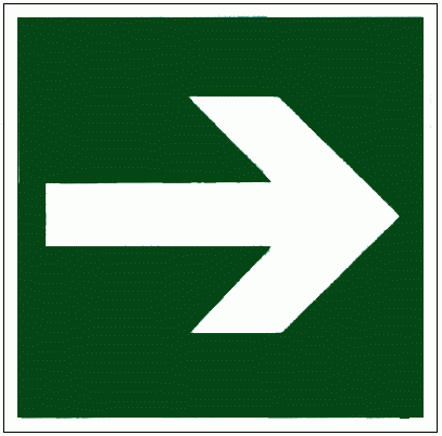 Е 12 | | Направление к эвакуационному выходу прямо | Над проходами, проемами, в помещениях большой площади. Размещается на верхнем уровне или подвешивается к потолку |
