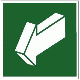 Е 08 | | Направление к эвакуационному выходу налево вниз | На стенах помещений для указания направления движения к эвакуационному выходу по наклонной плоскости |