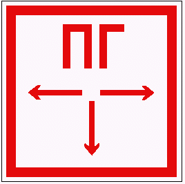 Е 04 | | Направление к эвакуационному выходу налево | На стенах помещений для указания направления движения к эвакуационному выходу |