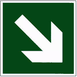 Е 02-02 | | Направляющая стрелка под углом 45° | Использовать только вместе с другими эвакуационными знаками для указания направления движения |