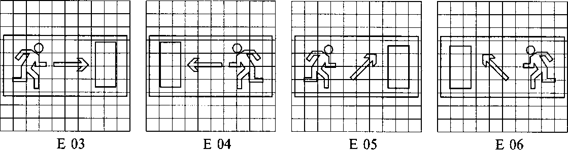 Е.1. Эвакуационные знаки следует устанавливать в положениях, соответствующих направлению движения к эвакуационному выходу.