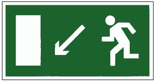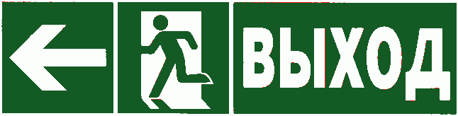 Е 22 | | Указатель выхода | Над дверями эвакуационного выхода или в составе комбинированных знаков безопасности для указания направления движения к эвакуационному выходу |