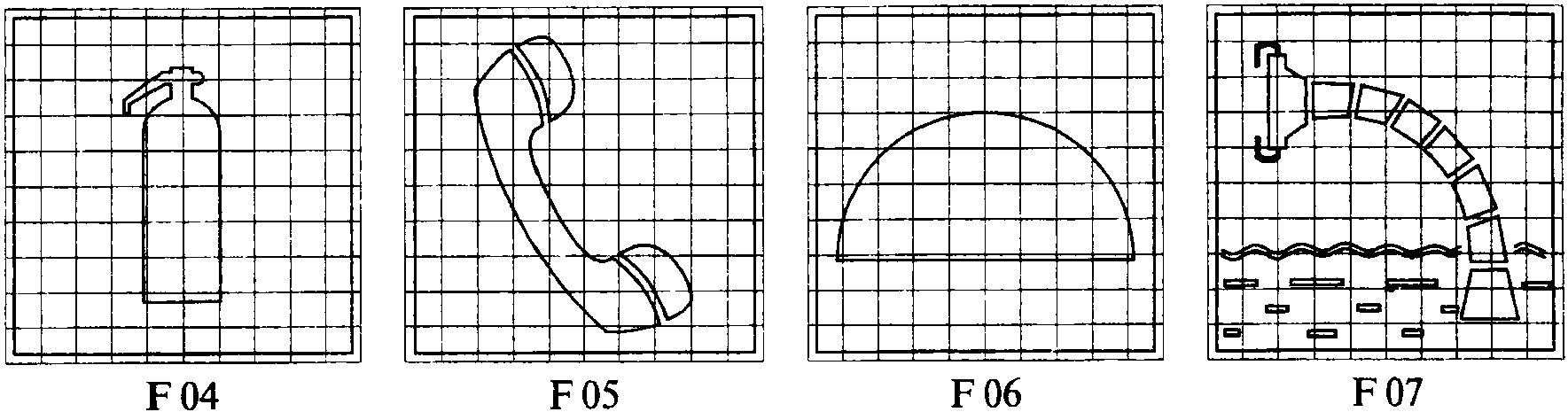 Е 10 | | Указатель двери эвакуационного выхода (левосторонний) | Над дверями эвакуационных выходов |