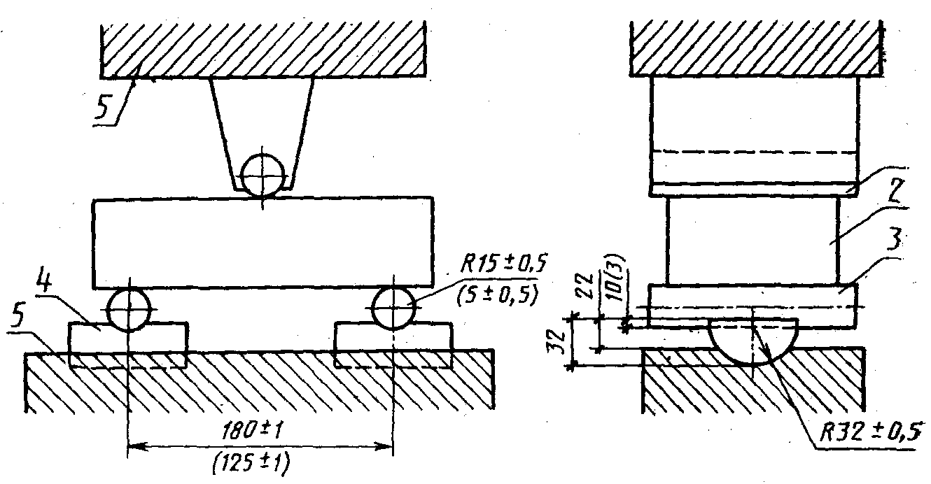 2 - образец для испытания; 3 - опоры, поддерживающие