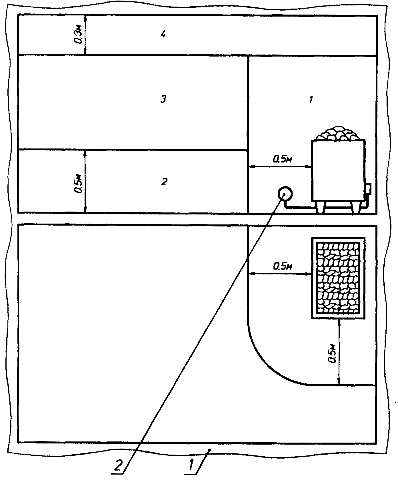 - зона 1, в которой допускается размещать только электронагреватели для саун;