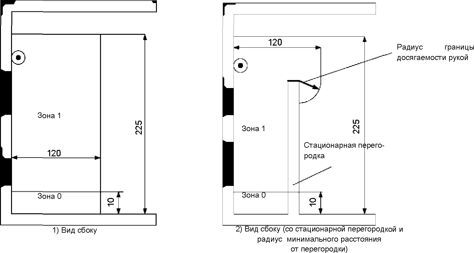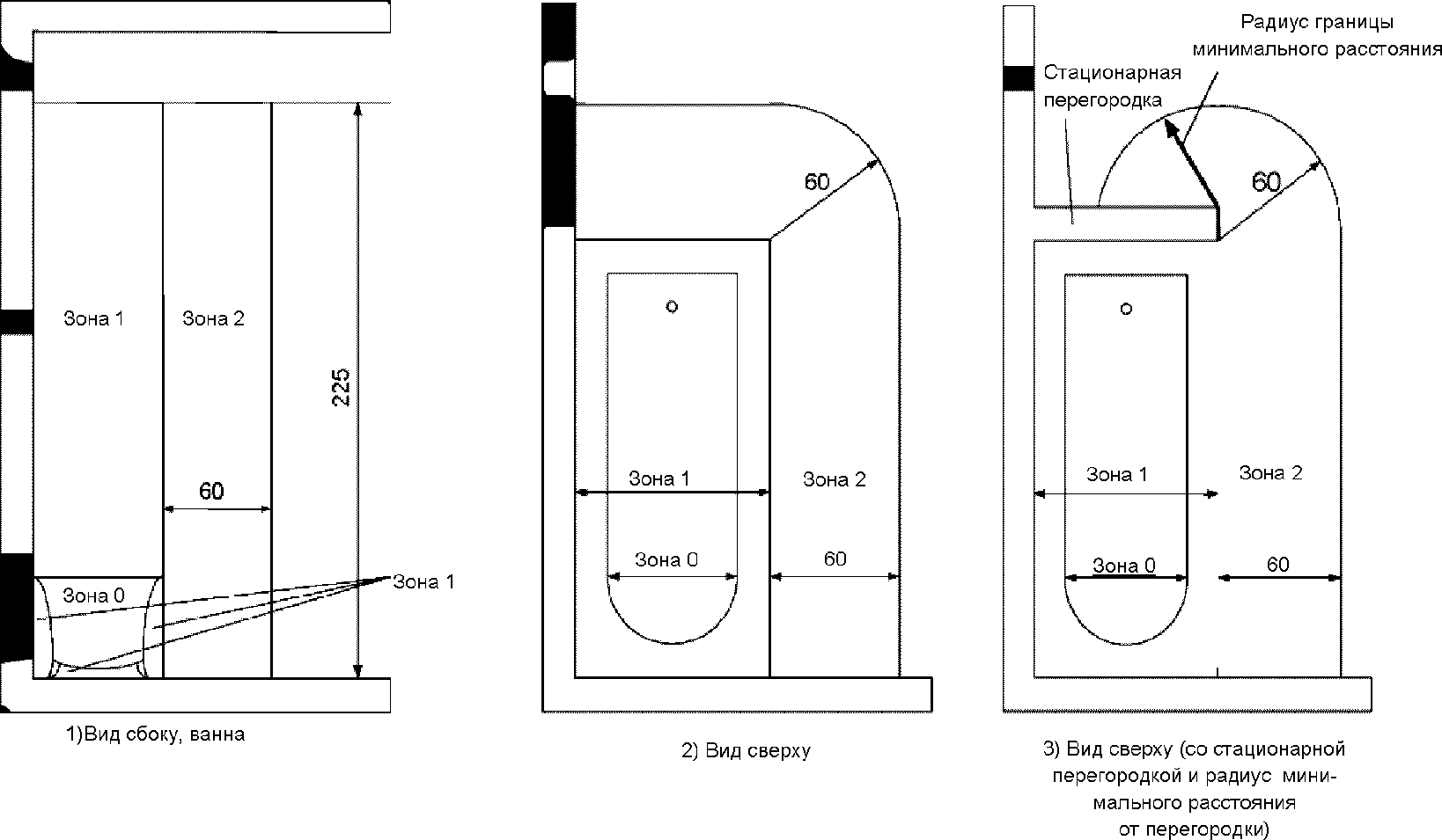 Рисунок 701.2. Размеры зоны 0 и 1 в помещениях,