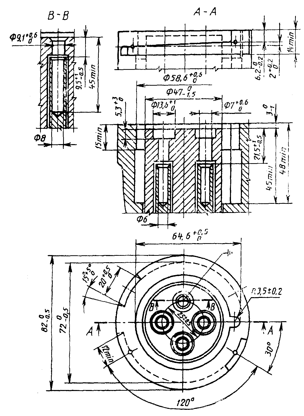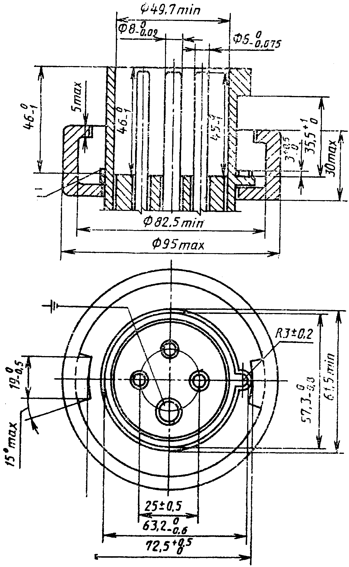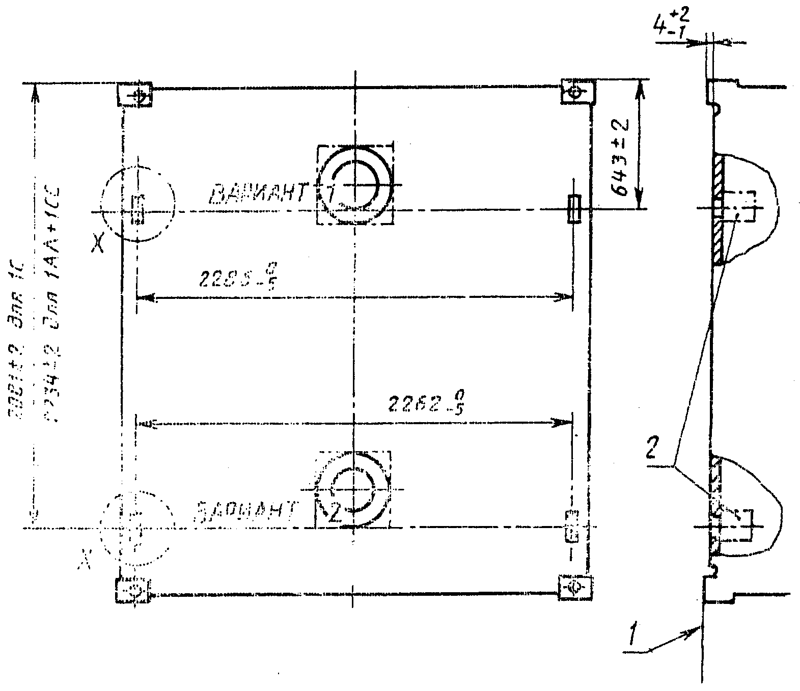 2 - допуск на оси симметрии; 3 - выводное отверстие;