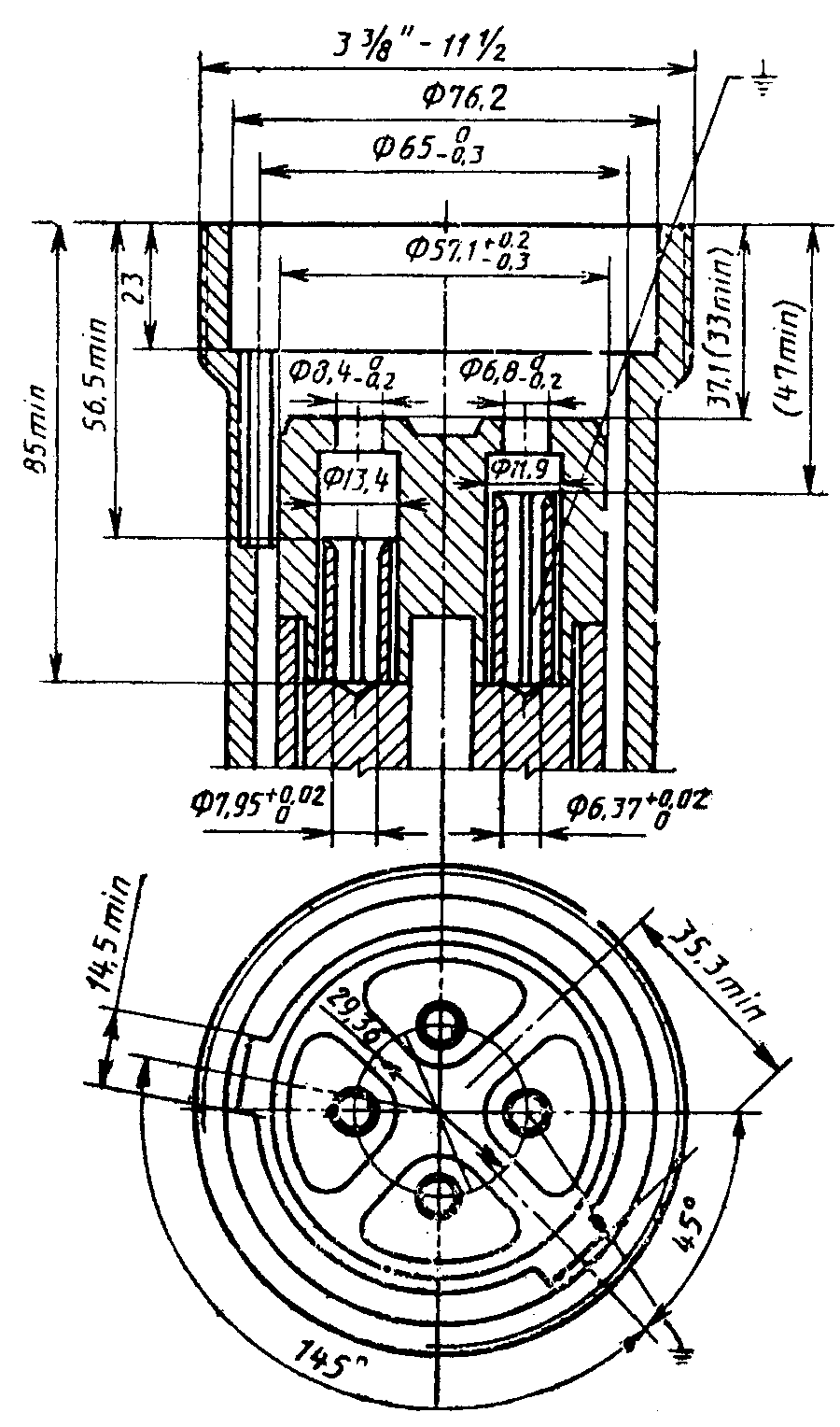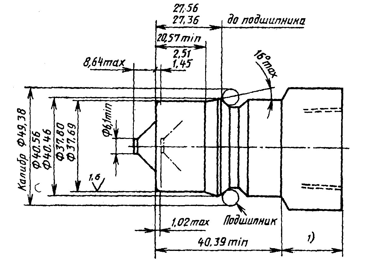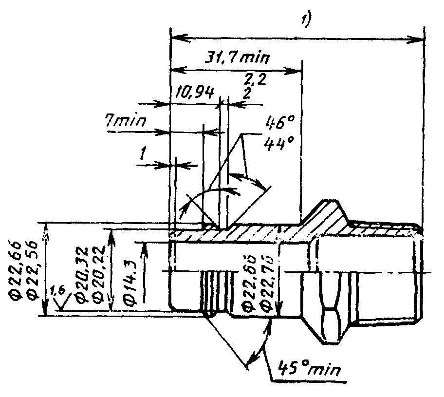 Ж.2.1.4. Отверстия могут иметь конические углубления, но диаметр канала резьбы нигде не должен быть менее 254 мм.