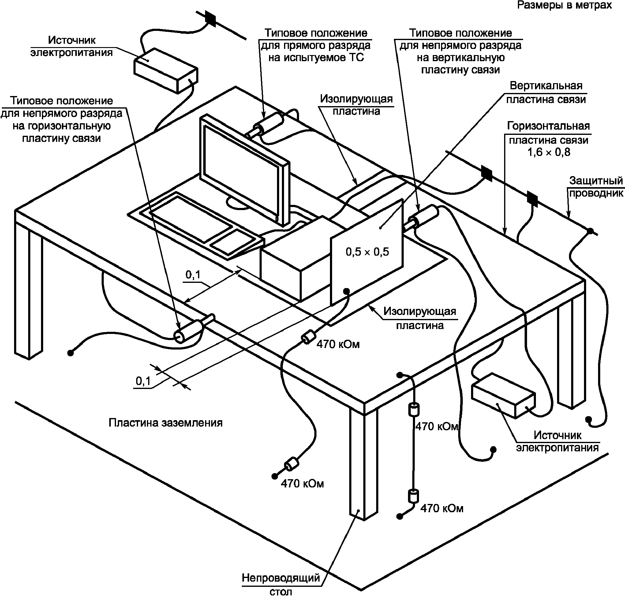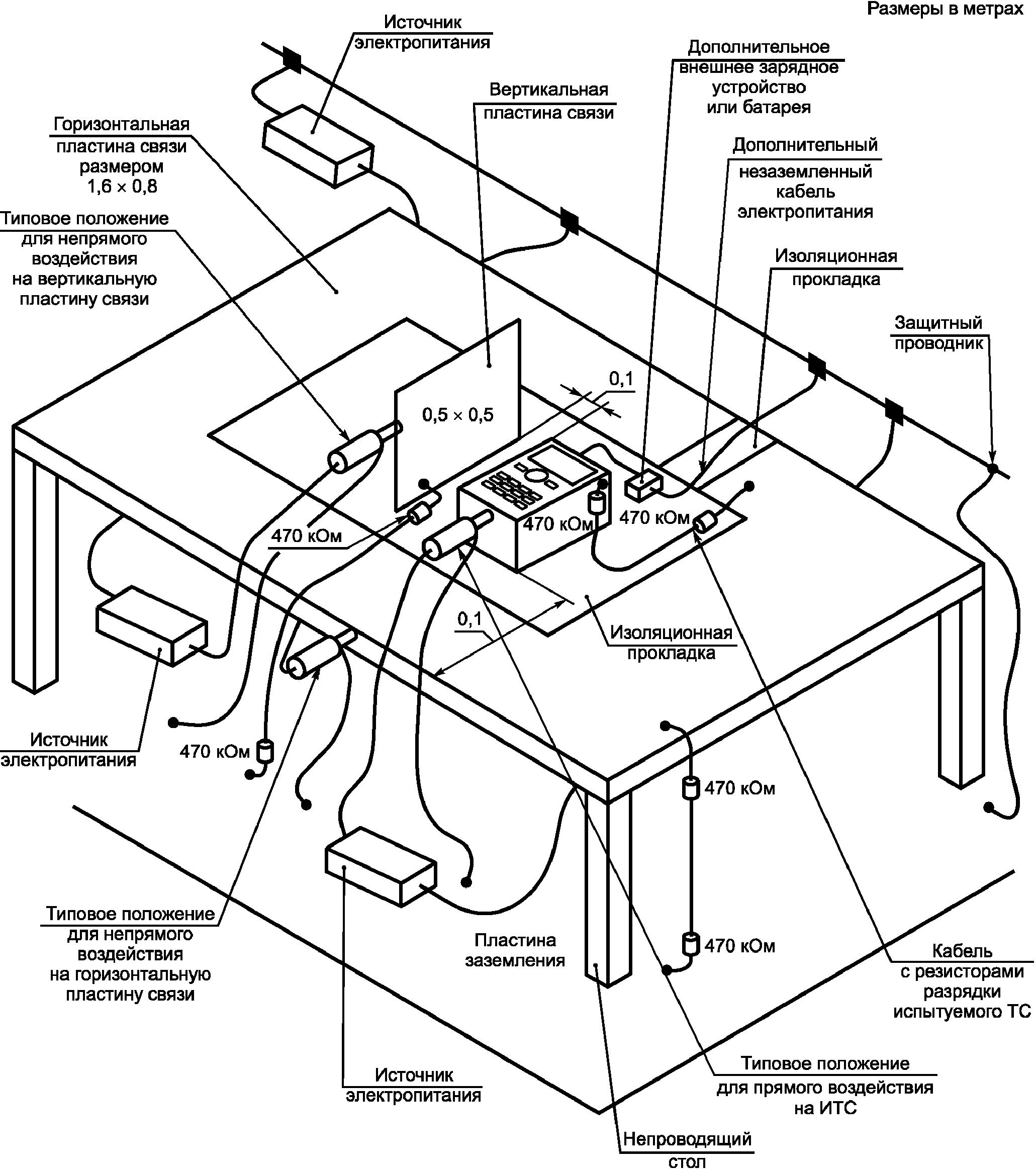 3.6. Пластина связи (coupling plane): металлический лист или пластина, которые подвергаются электростатическому разряду для имитации воздействия электростатических разрядов на объекты, находящиеся рядом с ИТС. При испытаниях применяют горизонтальную и вертикальную пластины связи.