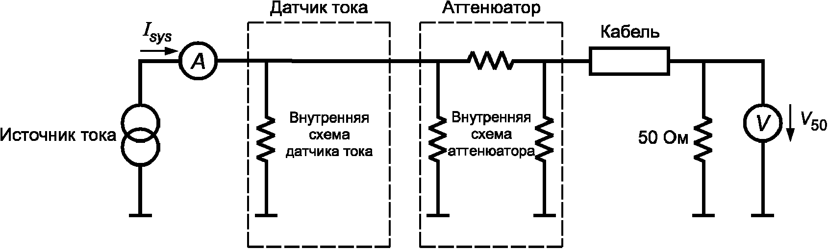 в цепи "датчик тока-аттенюатор-кабель" и коэффициентом