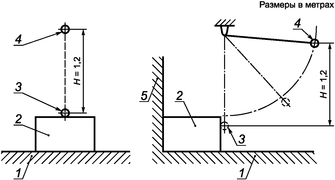 1 - жесткая опорная поверхность; 2 - испытательный образец;