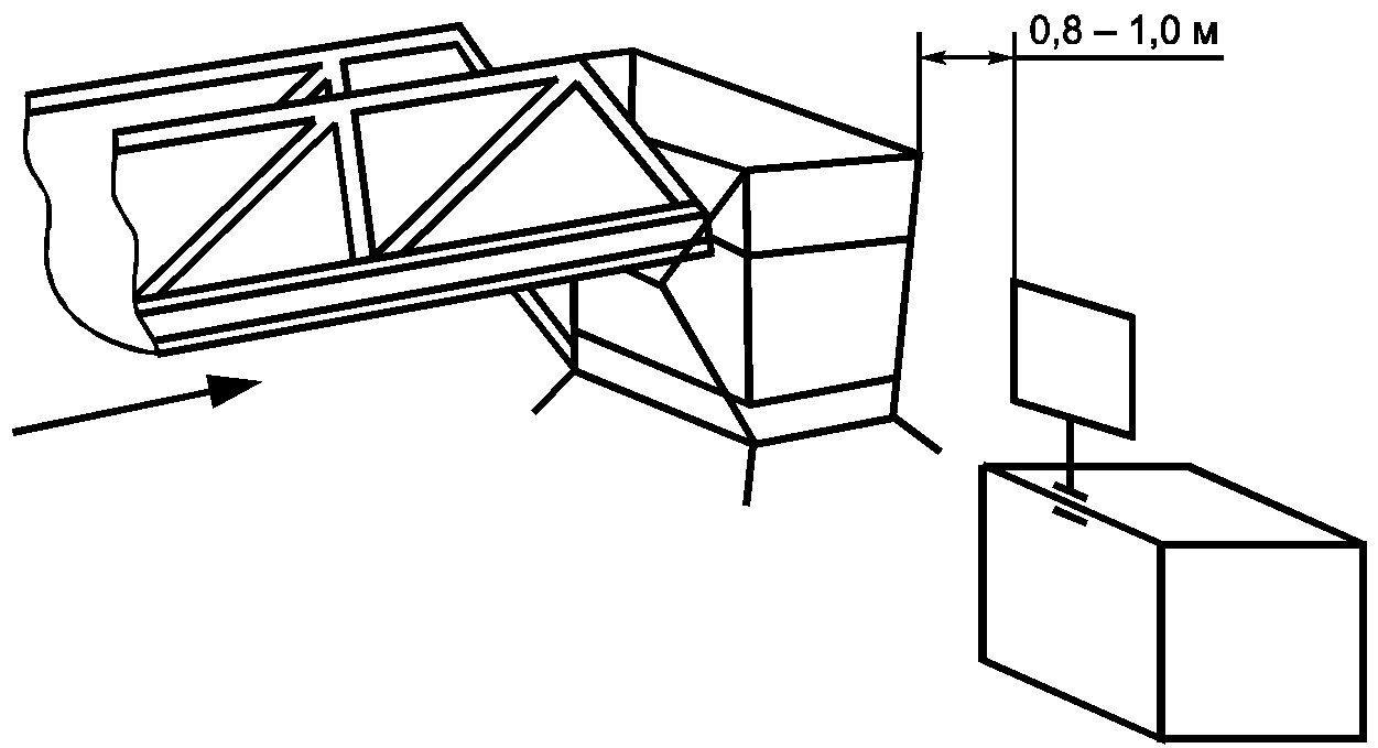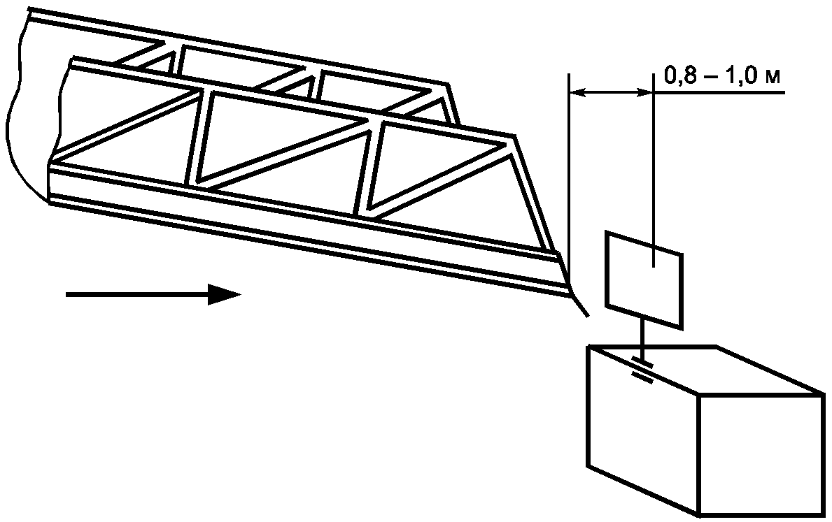 a - расстояние от плоскости, проходящей через ось вращения лестницы параллельно ребру опрокидывания, до центра массы подвешенного наибольшего рабочего груза при установке АЛ на горизонтальной плоскости, м. При расположении лестницы перпендикулярно к ребру опрокидывания a = 1;