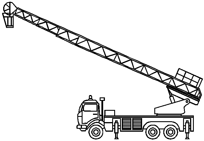 9.2.40.1 АЛ устанавливают на выносные опоры. Поднимают лестницу на минимальный угол, обеспечивающий ее поворот в любую сторону на 360°