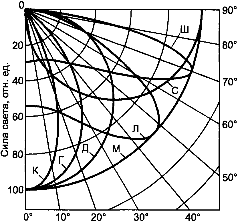 Равномерная | М | 0° - 90° | Кф <= 1,3 при Imin > 0,7Imax |