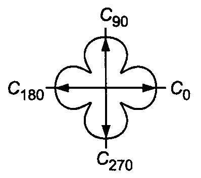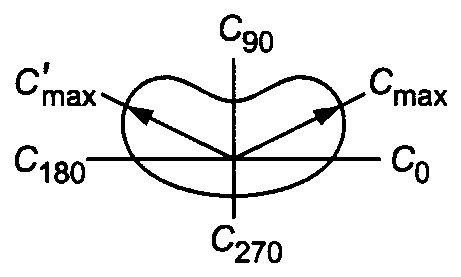 По результатам измерения распределения силы света в выбранной меридиональной плоскости C исходные данные для расчета представляют в виде массива значений силы света (I