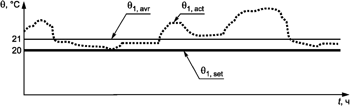 3.1.12 эквивалентная температура внутри помещения: Нормативно допустимый для расчета энергии на отопление нижний предел температуры внутри помещения, или нормативно допустимая для расчета энергии на охлаждение самая высокая температура внутри помещения, которая приводит примерно к такой же средней теплоотдаче, как и прерывистый режим работы отопления или охлаждения при учете неточностей регулирования температуры в помещении.