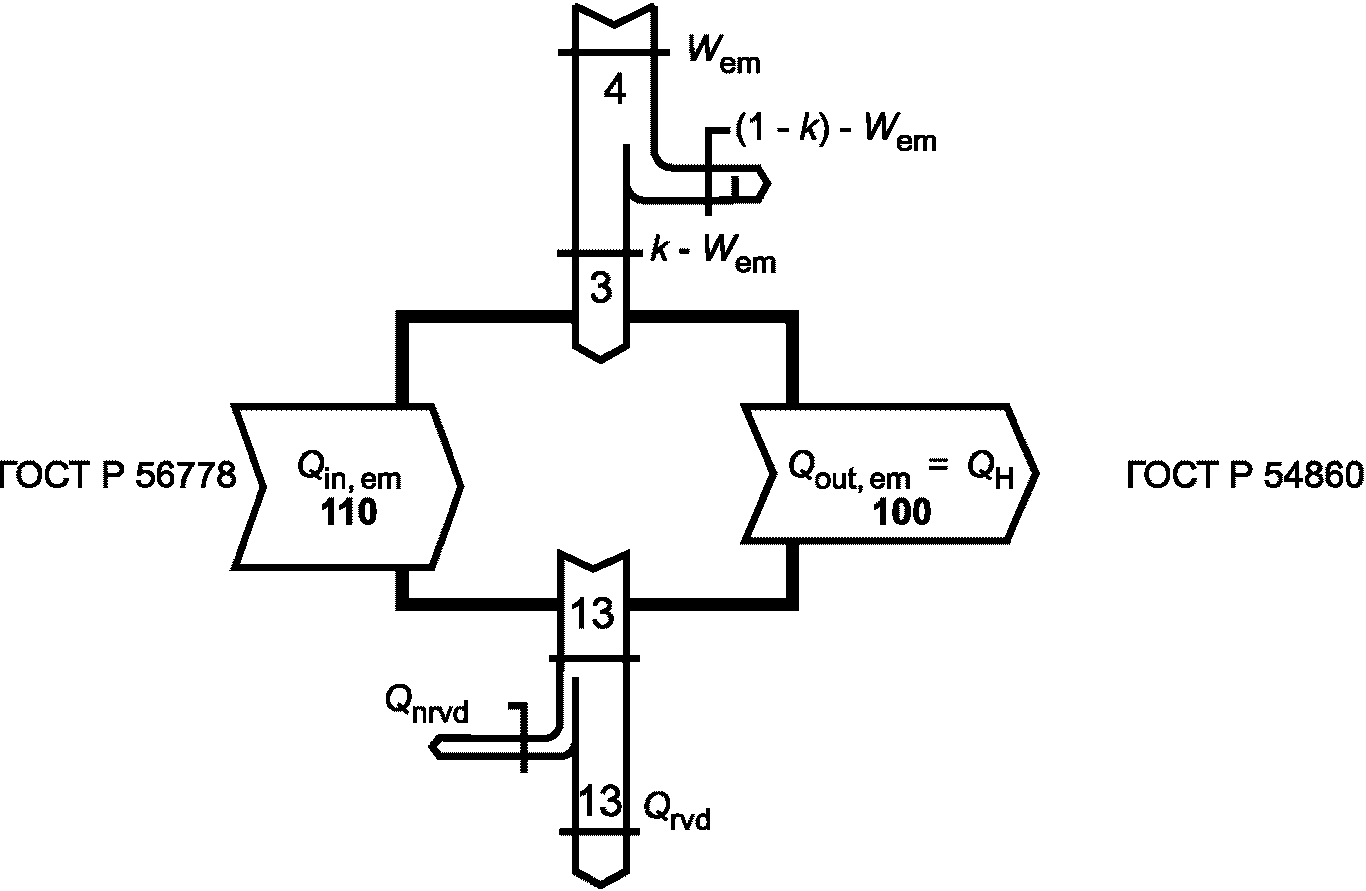 3.1.2 использованные вторичные энергетические ресурсы: Часть возвратных тепловых потерь системы, которые были утилизированы, возвращены и обусловили снижение потребления энергии для отопления и кондиционирования в виде тепловой энергии или расхода энергоносителя.