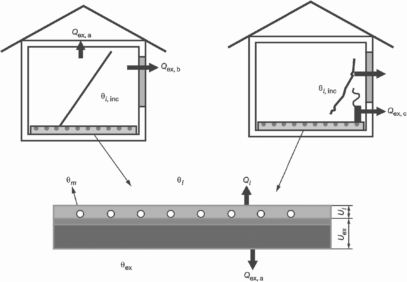 3.1.10 теплопотери помещения: Теплопотери через оболочку здания (ограждающие конструкции), потери, обусловленные неравномерным распределением тепловых потоков, отсутствием балансировки и регулировки теплоотдачи отопительных приборов, встроенных в ограждающие конструкции здания.
