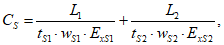 (24)где CS1 - эластичность пластины N 1 (см. рисунок 15), мм/Н; CS2 - эластичность пластины N 2 (см. рисунок 15), мм/Н. 8.2.10 Эластичность пластины N 1 CS1, мм/Н, вычисляют по формуле |