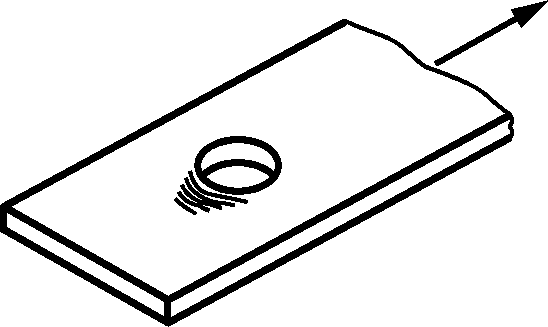 Второе отверстие | 2 | Расслаивание краев | D | На тисках | A | По краю отверстия | O |
