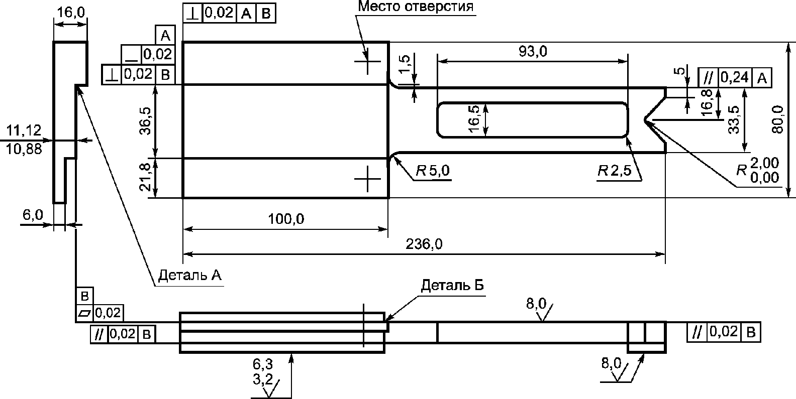 Примечания 1 Шероховатость поверхности образцов (по параметру Ra) должна быть не более 1,6 мкм. 2 Зенкование отверстий допускается. | |