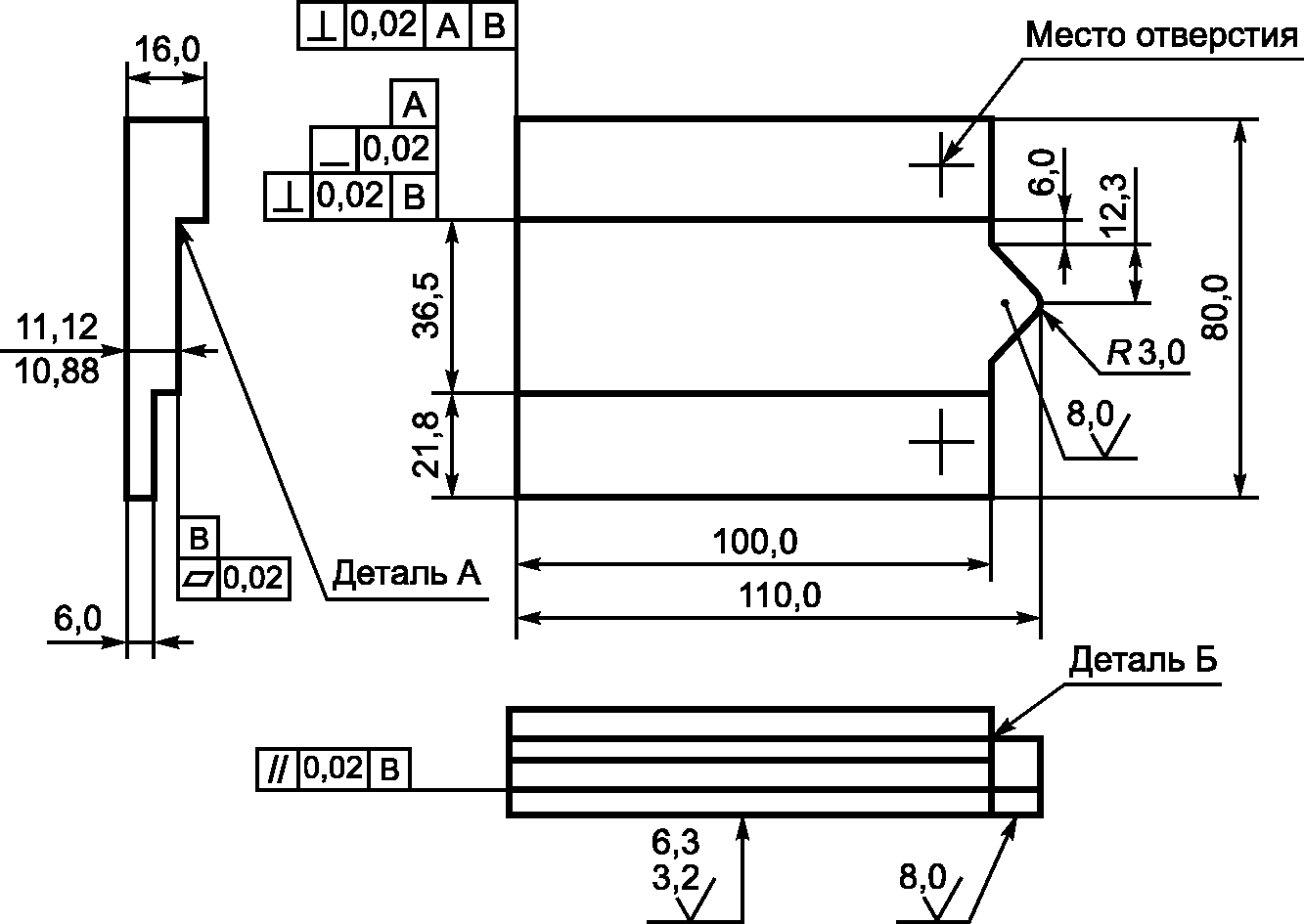 Примечания 1 Шероховатость поверхности образцов (по параметру Ra) должна быть не более 1,6 мкм. 2 Зенкование отверстий не допускается. | |