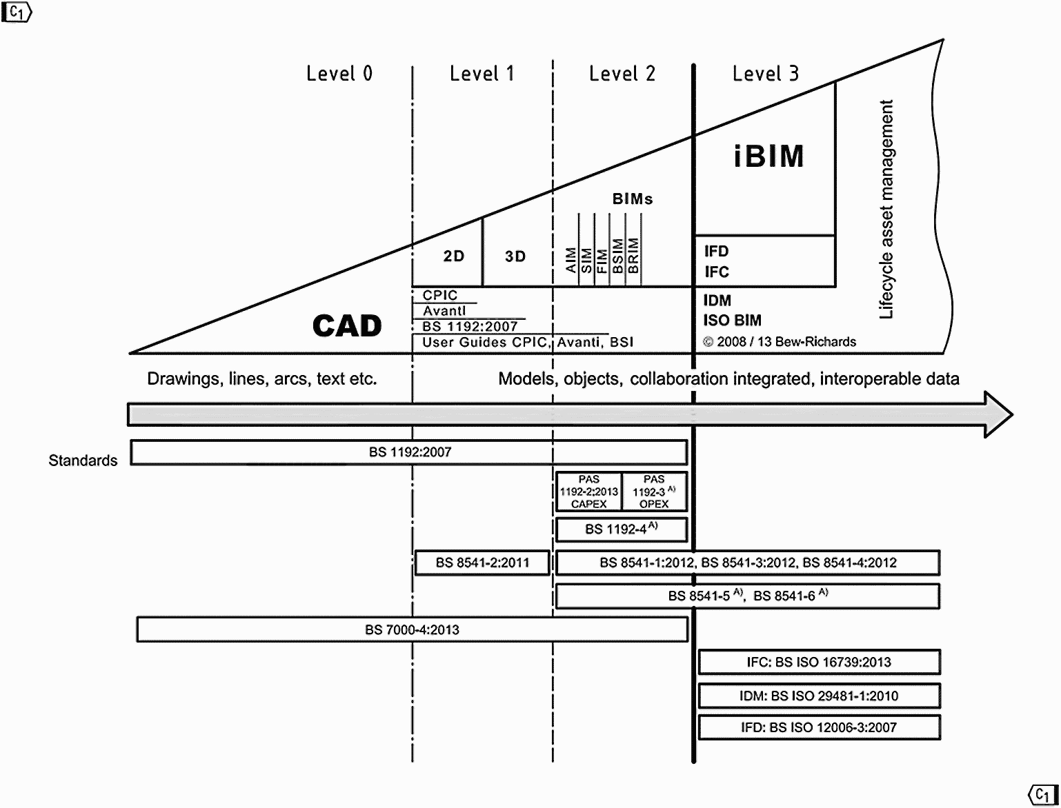 Данное Руководство основано на современных подходах к использованию Систем автоматического проектирования (САПР) и Информационного моделирования зданий (BIM) и соответствует принятому в международных практиках обозначению "уровня зрелости (развития) BIM" - BIM Level 2. В ряде Европейских стран, например, в Великобритании, "уровень зрелости" BIM Level 2, установлен как обязательное требование при проектировании, строительстве и вводе в эксплуатацию в рамках государственного или общественного финансирования. BIM Level 2 требует полной совместимости 3D BIM со всей проектной информацией, включая управление активами, документацией и электронными данными.