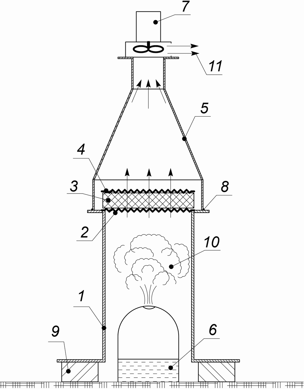 9 - подставки под основание; 10 - паровоздушная смесь;