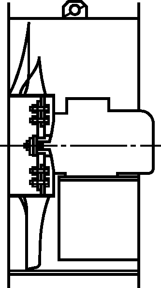 схема К: Вентилятор, состоящий из рабочего колеса без входного направляющего аппарата и спрямляющего аппарата [см.