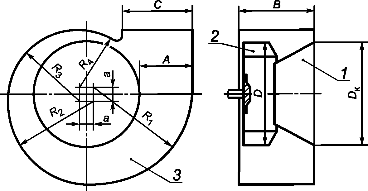 2 Диаметр рабочего колеса определяет размер вентилятора. Размеры всех других элементов вентилятора, которые определяют в долях от диаметра колеса, являются безразмерными геометрическими параметрами.