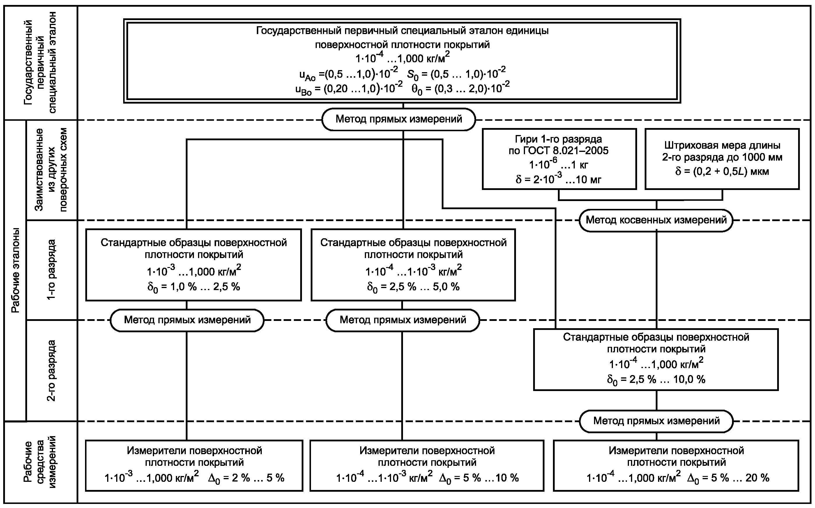 4.1.2. Гири 1-го разряда и штриховые меры длины 2-го разряда применяют для передачи единицы поверхностной плотности покрытий эталонам 2-го разряда методом косвенных измерений.