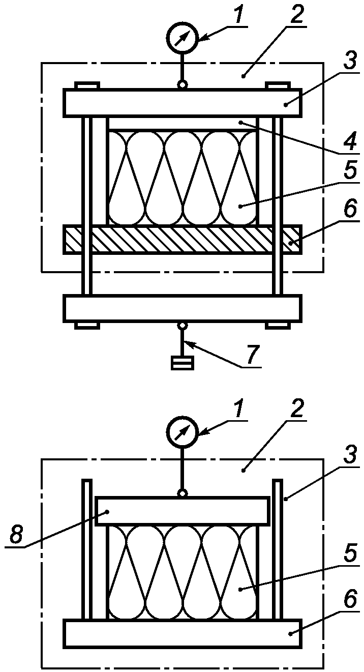 5.3. Приспособление для создания нагрузки, состоящее из двух плоских пластин, одна из которых является подвижной. Пластины должны быть расположены так, чтобы создавать сжимающую нагрузку на образец в вертикальном направлении. Подвижная пластина должна быть самовыравнивающейся.