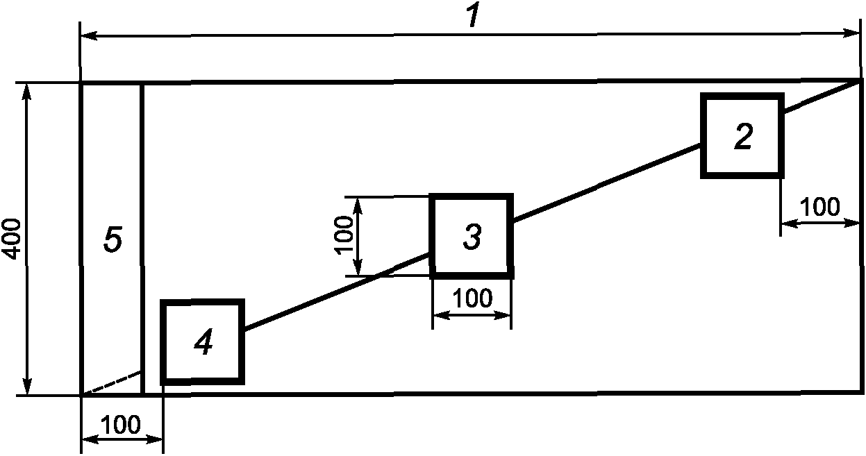 1 - ширина полотна материала; 2, 3, 4 - образцы; 5 - кромка