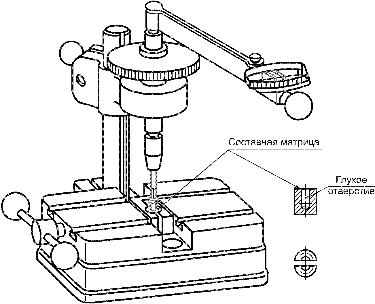 Стержень образца винта (с покрытием или без) зажимают в составной матрице с резьбой или другом устройстве таким образом, чтобы зажатая часть винта не была повреждена и не менее двух полных витков резьбы выступали над зажимным устройством, и не менее двух полных витков резьбы (выше заходного конуса) находились в зажимном устройстве. Матрицу с резьбой и глухим отверстием допускается использовать вместо зажимного устройства (см. рисунок 1), если глубина отверстия обеспечивает разрушение выше линии зажима.