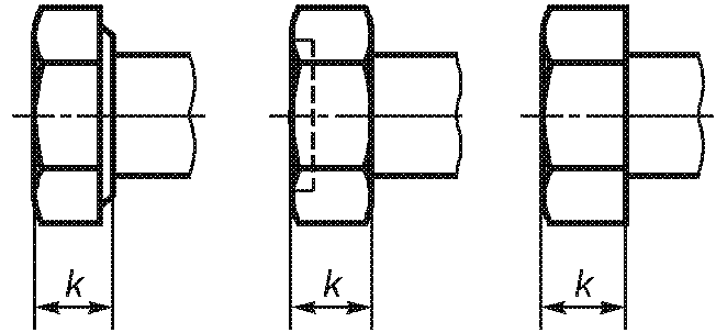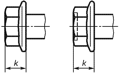 ![]() Рисунок 6 | Для болтов и винтов с шестигранной головкой с фланцем значение k определяют только как максимальное значение | ||||||