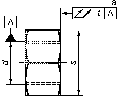 5.2.2.3. Прямолинейность ![]() -------------------------------- <a>, <b> См. рисунок 95. | t = 0,003l + 0,05 | - | Для l <= 20d | |
