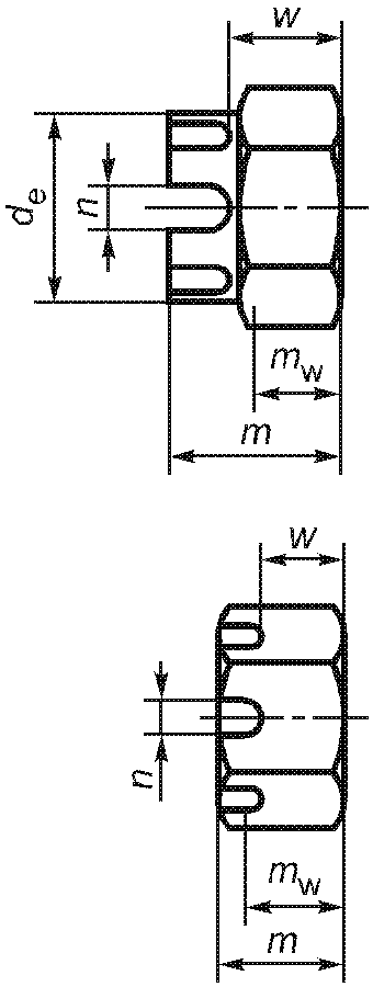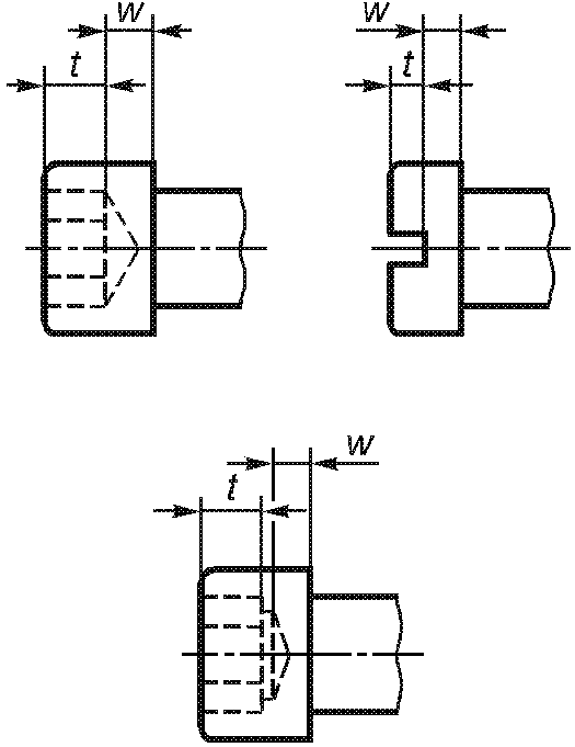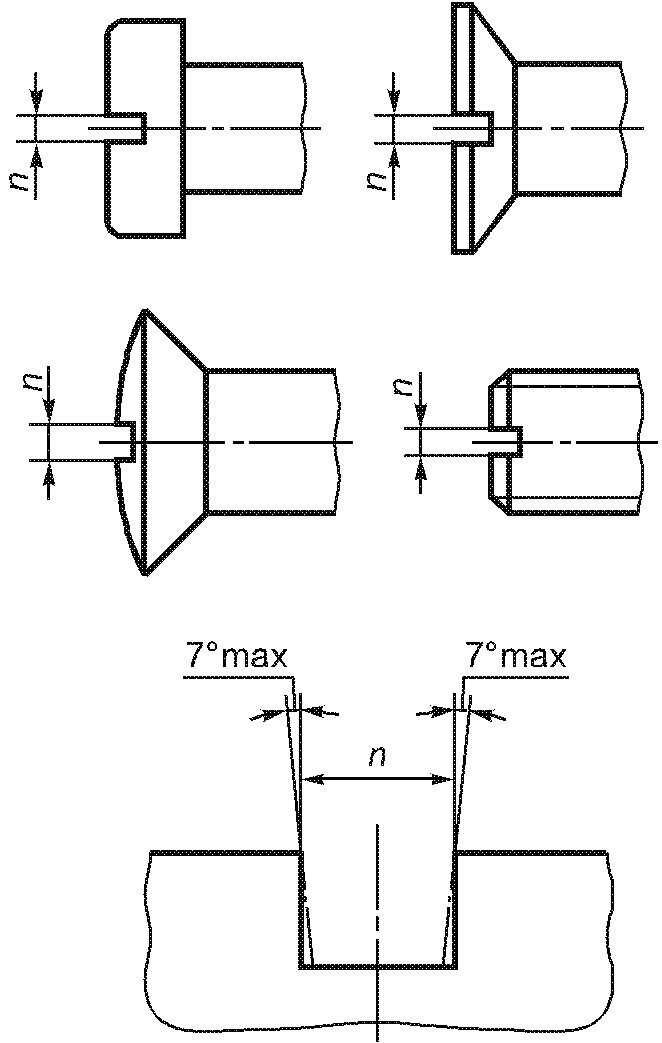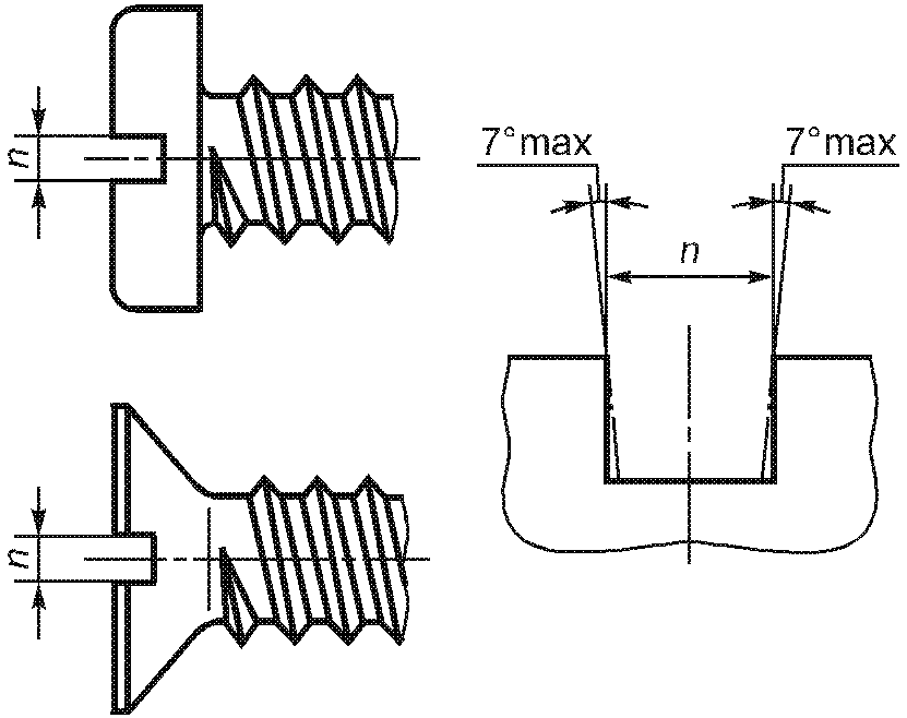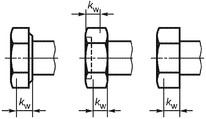 3.1.3.2.3. Глубина шестигранных углублений и шлицев ![]() Рисунок 11 | Глубину шестигранных углублений и шлицев устанавливают в стандартах на изделия только как минимальную глубину. Она ограничивается минимальной толщиной основания w | - | - | В настоящее время в большинстве случаев подходящие допуски не могут быть установлены | |||